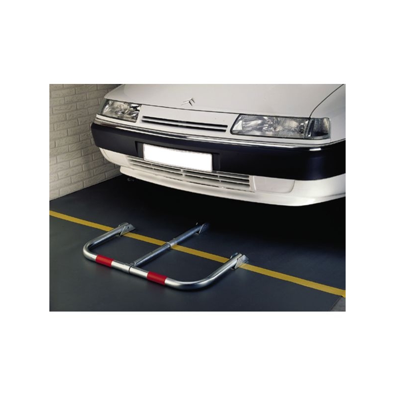 Protection permanente de stationnement. Tube Ø 35 mm, traité antirouille, livrée avec 2 bandes rouges de repérage. Verrouillage simple et efficace par cadenas (inclus). Embases tôle, vis et chevilles (fournies). L x H x P : 75,5 x 40 x 36 cm Poids : 5,600 kg
