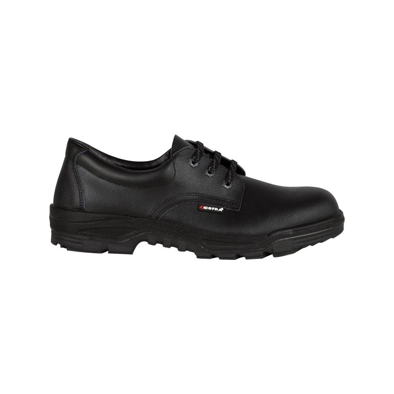 Tige en cuir imprimé, hydrofuge. Doublure 100% polyamide, respirant, absorbant l'humidité, anti-abrasion. Semelle de propreté en mousse de latex, absorbant l'humidité, antistatique, couverte d'un tissu antibactérien empêchant la formation d'odeurs. Semelle en PU bidensité. Embout de sécurité en acier. Semelle antiperforation en acier inoxydable. Coloris : noir Pointure : 48 à 51 Norme : CE Cat II - EN ISO 20345 - S3 SRC