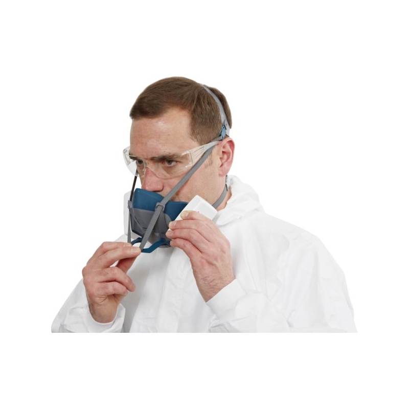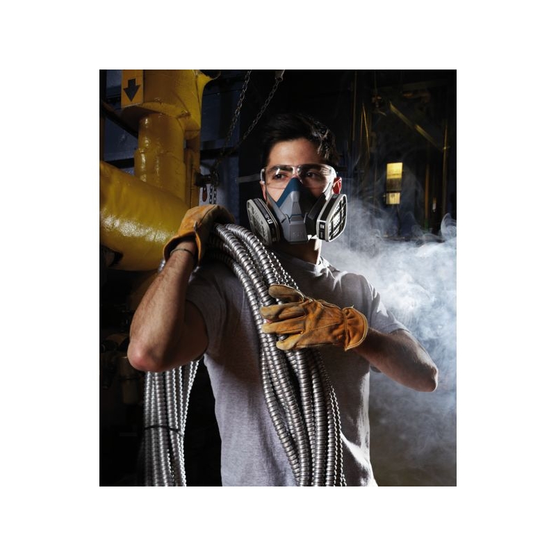 Pièce faciale en silicone. Harnais ajustable. Équipé d'une soupape expiratoire centrale qui réduit l'humidité et la chaleur à l'intérieur du masque. Mise en place et retrait aisé lors de l'entrée ou de la sortie d'une zone contaminée, grâce au système Quick Latch. À équiper de filtres latéraux fixés par système 'Click' à baïonnette. Confortable, léger, entretien facile. Polyvalence d'emploi : filtres antigaz et/ou à particules Poids : Taille : moyenne Norme : CE Cat III - EN 140