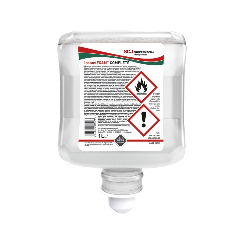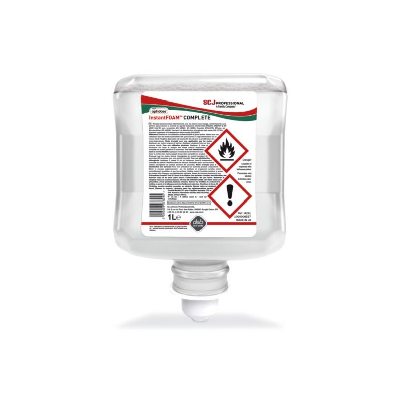 Mousse désinfectante hydroalcoolique avec agents hydratants pour les mains, extrêmement efficace, sans parfum ni colorant. S’utilise sans eau et élimine 99,999% des germes les plus courants en 30 secondes seulement. Formule hypoallergénique adaptée à un usage fréquent, non altérante et compatible avec les gants, idéale pour une utilisation au contact des aliments. Utilisation : secteurs où un niveau d'hygiène élevé est requis, secteur médical, agroalimentaire, restauration collective, bureau Conforme à la Réglementation Européenne Biocides n°528/2012. Conforme aux normes bactéricides (EN 1500, EN 12791, EN 1276, EN13727), levuricide (EN1650, EN13624), tuberculocide (EN 14348) et virucide (EN14476). Utilisez les biocides avec précaution. Avant toute utilisation, lisez l'étiquette et les informations concernant le produit . La cartouche s'utilise avec le distributeur réf. 19064.