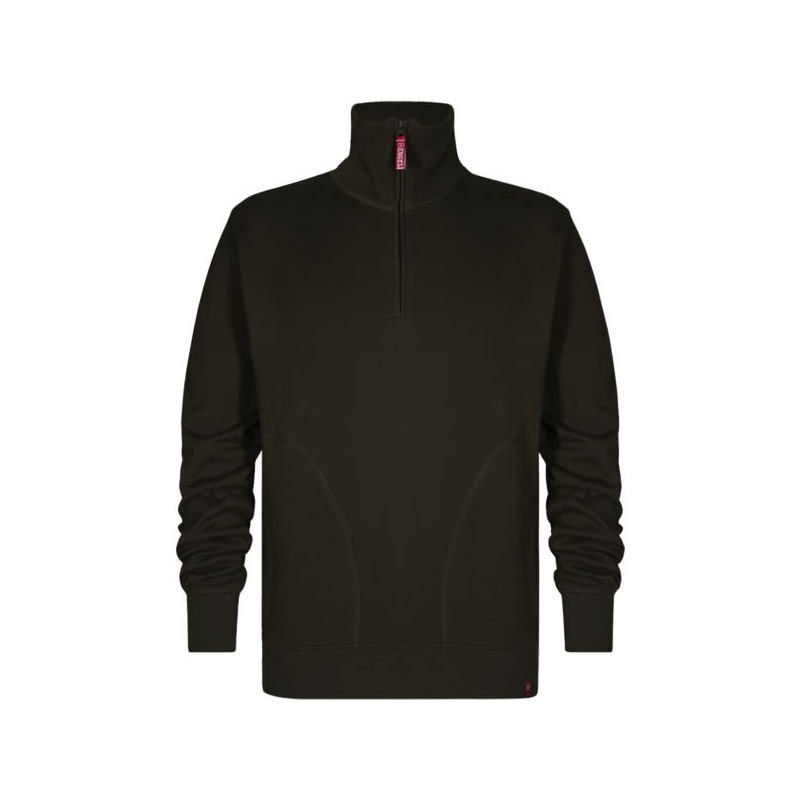 70% coton 30% polyester - Molleton, 320 g/m². Col montant et fermeture à glissière, encolure, taille et manches en bords côtes renforcées, surpiqûres fantaisie, grandes poches latérales. Coloris : bleu marine, gris foncé, noir Taille : S à 4XL