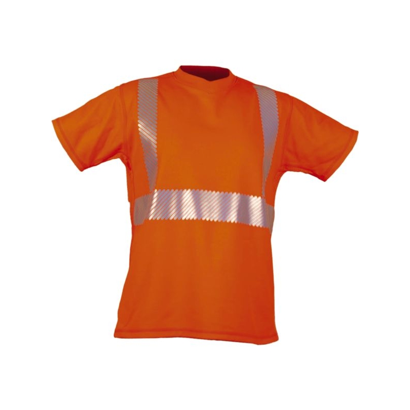 55% coton 45% polyester – Maille, 180 g/m². Tissu double face piqué optimisant l’évacuation de la transpiration. Bandes rétroréfléchissantes microbilles grises segmentées - respirantes, extensibles et légères (50 cycles de lavage). La segmentation de la bande permet l’évacuation de la transpiration et optimise le confort par forte chaleur. Coutures plates anti-irritations, col en V, emmanchures, bas de manches et base sur les côtés en tissu maille technique ultra respirant en coloris contrastant. Manches courtes. Protection contre les rayons UV : UPF 40+ Entretien : lavage industriel 15797 8B Coloris : jaune fluo, orange fluo, rouge fluo Taille : S à 3XL Norme : CE Cat II - EN ISO 20471 (2) - EN 13758-2 - EN 15797